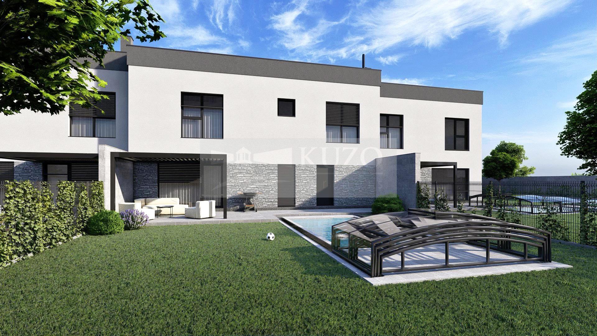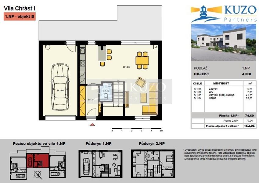 V moderní a prakticky řešené vile, najdete jednotku o dispozici 4+kk a komfortních 152 m2 vnitřní užitné plochy ve dvou podlažích. Podlahová plocha jednotky je 160 m2. Součástí jednotky je vlastní garáž a k tomu je před vilou další privátní parkovací stání. V zadní části domu si budete užívat privátní rovinatou zahradu o výměře 286 m2, která navazuje na venkovní terasu. Celková výměra pozemku, který náleží k této jednotce je 440 m2.